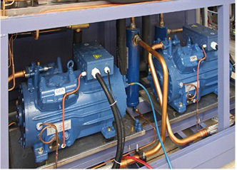 以加熱•冷卻輸出控制變頻器與調節(jié)電子膨脹閥,控制各區(qū)間的冷媒量 來調節(jié)被浪費的加熱量及控制冷凍機來實現(xiàn)節(jié)能。(變頻控制為選項) |